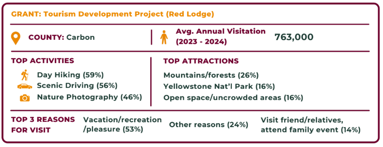 In 2025, Red Lodge’s Tourism Development Project was one of seven communities throughout Montana to be awarded a Cohort 2 Pilot Community Tourism Grant in the amount of $1.25 million over a two-year period with the potential to be awarded $2.75 million over a five-year period.